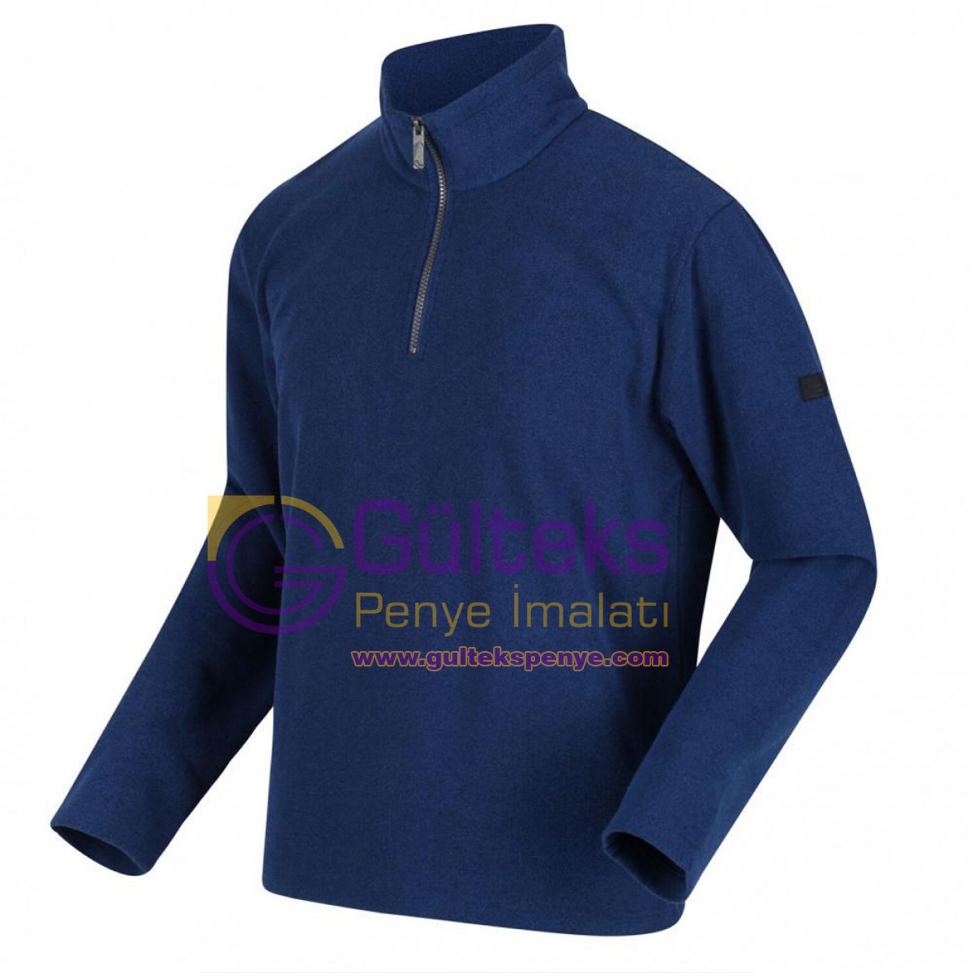 Dik Yaka Fermuarlı Polar Sweatshirt Mavi