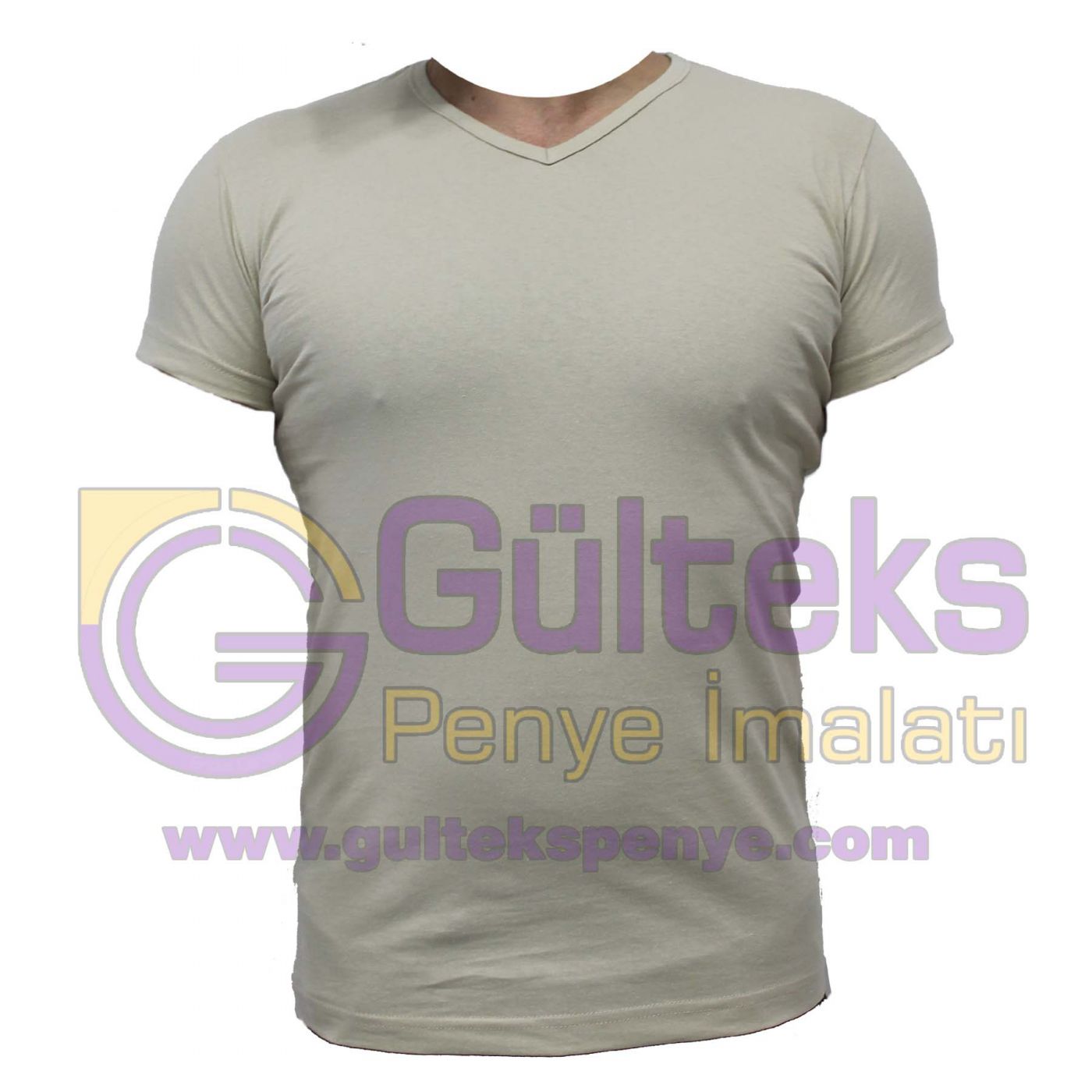 • V Biye Yaka Penye TShirt-V-Yaka-Penye-Biye-Yaka-Bej-018-1